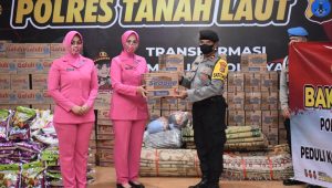 Bantuan diserahkan secara simbolis oleh Kapolres Tanah Laut AKBP Rofikoh Yunianto, S.I.K dan Ketua Bhayangkari Cabang Tanah Laut Ny. Nadya Rofikoh Yunianto kepada Kasat Samapta Polres Tanah Laut Iptu Syarwani Pasha, S.H untuk selanjutnya diserahkan secara langsung Ke Polres Hulu Sungai Tengah, bertempat di Joglo Pesan Gatra Polres Tanah Laut, Rabu malam (1/12/2021).