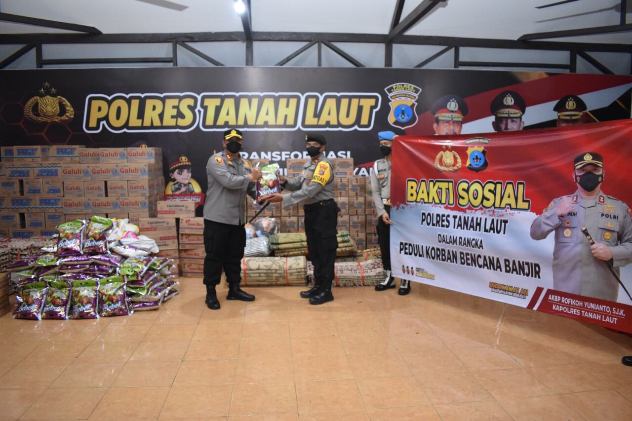 Kapolres Tanah Laut AKBP Rofikoh Yunianto, S.I.K mengatakan Adapun bantuan yang dikirim sangat beragam, sesuai kebutuhan warga terdampak banjir, yang terdiri dari 147 Dus Mie instan, 200 dus air mineral, 100 rak / ( 3000 ) butir telur ayam, 6 dus minyak goreng, 50 karung beras @5 kg, 50 pack tikar karpet, 50 pack selimut, 50 pack pamper bayi, 10 dus pasta gigi, 25 pack selimut.