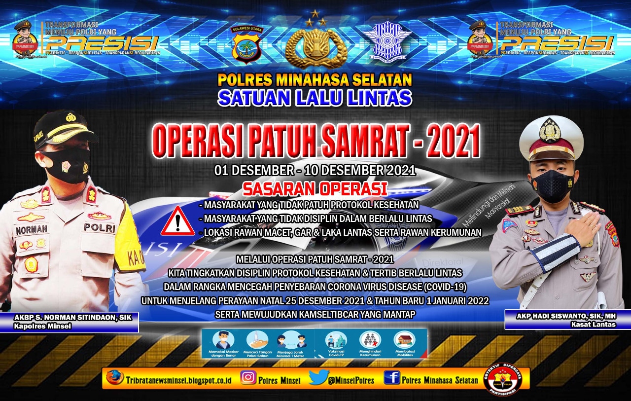 Kapolres Minsel AKBP S. Norman Sitindaon, SIK; yang dikonfirmasi melalui Kasat Lantas AKP Hadi Siswanto, SIK, MH; pada Kamis siang (02/12/2021) siang, mengungkapkan bahwa Ops Patuh digelar menjelang perayaan Natal dan Tahun Baru.