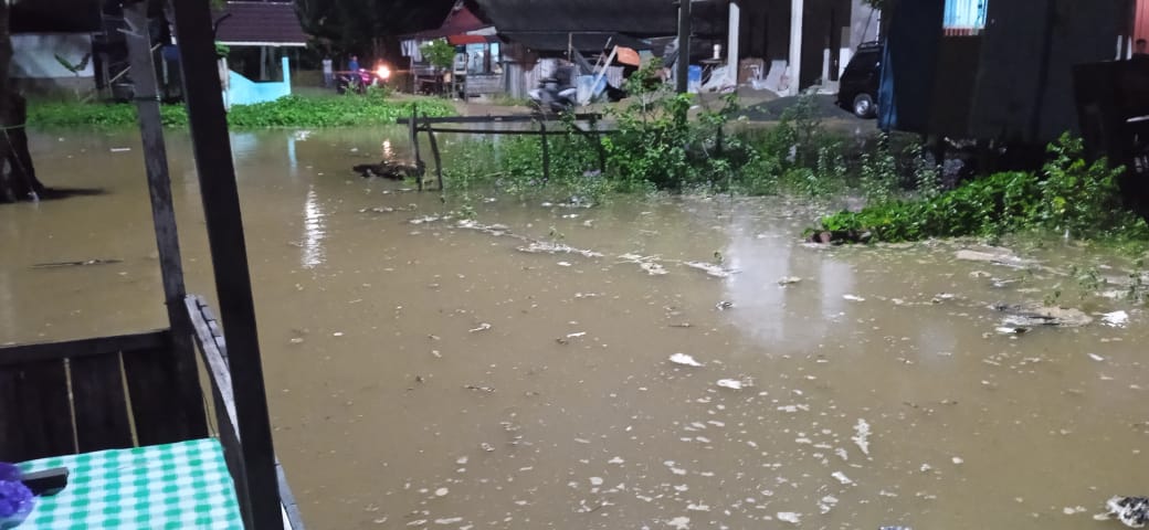 Sementara itu, Desa Muara Asam-Asam Kecamatan Jorong, pada Senin (06/12/2021) pukul 18.00 air mulai naik sampai pada rumah penduduk karena curah hujan yang tinggi dan air pasang.