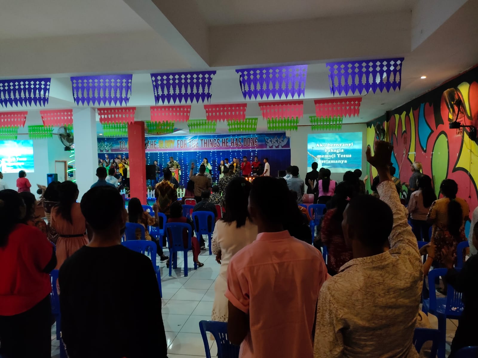 “Perlu adanya kesadaran kita itu berarti sebagai umat yang percaya kepada Yesus Kristus yang adalah juruselamat kita yang mana telah berikan kesempatan untuk kita menikmati dan merasakan kehadiran Tuhan dalam kemuliaan-nya dan juga turut merayakan Natal bersama-sama di malam hari ini” ucap Fanny.