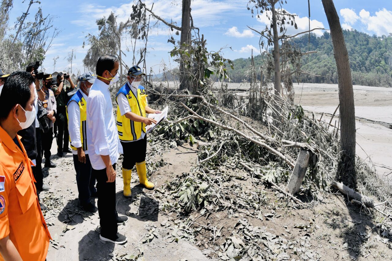 “Pagi hari ini saya datang ke lokasi untuk memastikan bahwa seluruh kekuatan yang kita miliki sudah berada di lapangan untuk pencarian korban yang masih ada, kemudian juga evakuasi, juga penanganan pengungsi di lapangan, dan juga ini kita lihat untuk rencana perbaikan infrastruktur yang rusak akibat letusan Gunung Semeru ini,” ujar Presiden usai meninjau Jembatan Gladak Perak di Kecamatan Candipuro.
