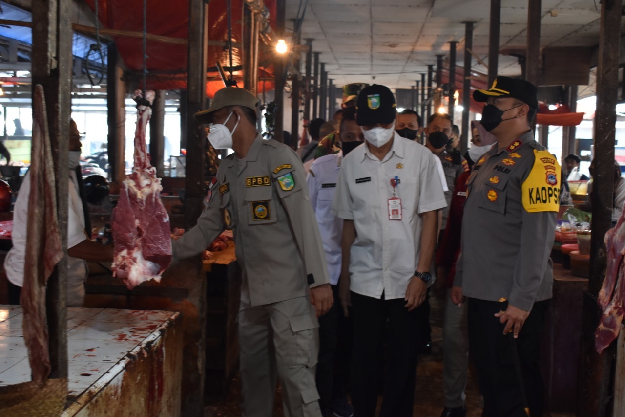 Kapolres Tanah Laut AKBP Rofikoh Yunianto, S.I.K, dan Bupati Tanah Laut H.M Sukamta bersama Disperindag Tanah Laut, mengelilingi Pasar Tapandang Berseri Pelaihari  untuk meninjau stabilitas terkait dengan harga Sembako.