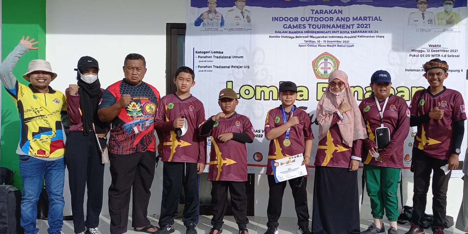 TERASNKRI.COM | NUNUKAN, KALTARA – Klub Panahan “Club Sebatik Archery” yang ikut dalam event pertandingan TARAKAN INDOOR OUTDOOR AND MARTIAL GAMES TOURNAMENT 2021 menurunkan 5 atlet dalam rangka memperingati HUT Kota Tarakan ke – 24 berhasil mempersembahkan medali emas. Minggu (13/12/2021)