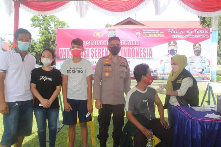“Merupakan tindak lanjut perintah dari Mabes Polri dan Polda Sulut, sebagai upaya percepatan vaksinasi untuk mencapai prosentase target nasional di akhir tahun 2021 ini,” ujar Kapolres Minsel AKBP S. Norman Sitindaon, SIK; yang memantau langsung kegiatan Vaksinasi.