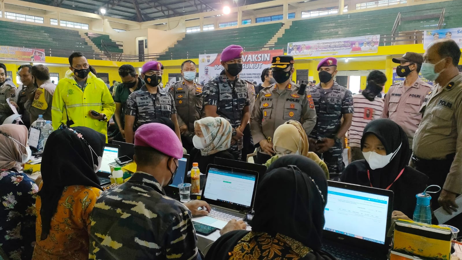 TERASNKRI.COM | Langkat, Sumut – Dalam rangka mendukung program vaksinasi pemerintah, Batalyon Infanteri 8 Marinir bersama Polres Langkat kembali melaksanakan vaksinasi serentak di Gedung Olahraga (GOR) Stabat, Kab. Langkat, Sumatera Utara. Jum’at (17/12/2021).