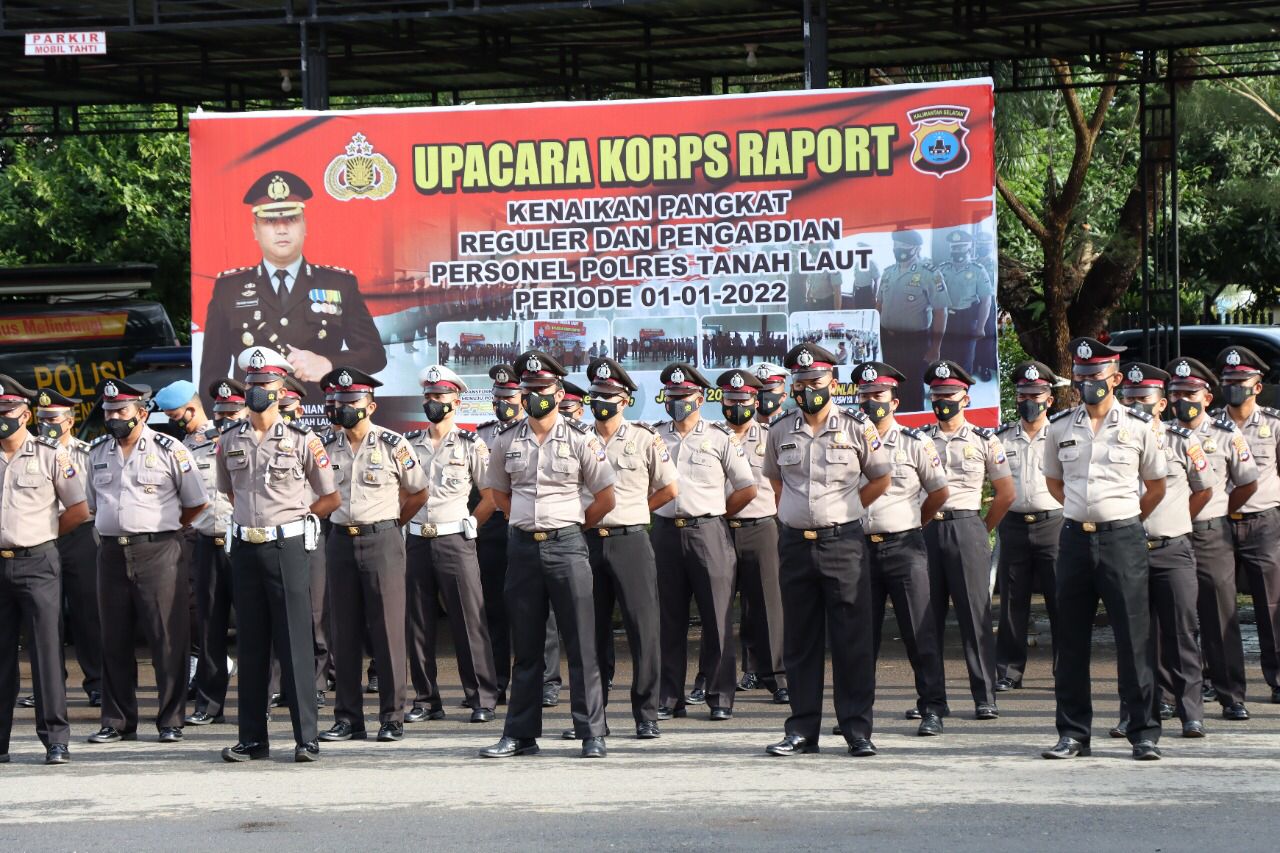 Adapun Personil Polres Tanah Laut yang melaksanakan Korps Rapot Kenaikan Pangkat sebanyak 55 Personil dengan rincian sebagai berikut dari AKP ke Kompol Pengabdian (1 personil ), IPTU ke AKP ( 4 personil ), AIPDA ke AIPTU (4 Personil), BRIPKA ke AIPDA ( 21 personil ), BRIGADIR ke BRIPKA ( 9 personil), BRIPTU ke BRIGADIR (1 Personil) dan BRIPDA ke BRIPTU (3 Personil).