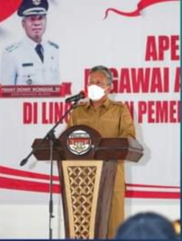 Bupati Minahasa Selatan Frangky Donny Wongkar SH Memimpin Apel Kerja Perdana Aparatur sipil Negara Tahun 2022