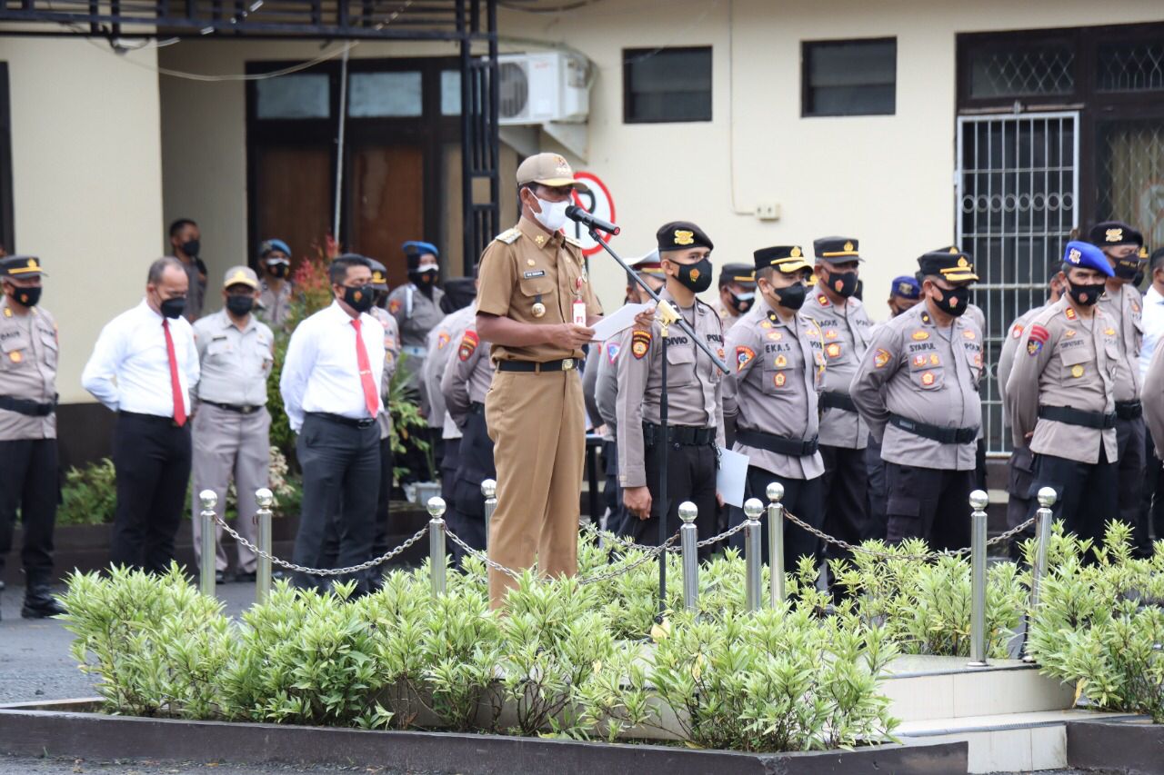 Upacara dipimpin oleh Bupati Tanah Laut H.M Sukamta yang dihadiri oleh Kapolres Tanah Laut AKBP Rofikoh Yunianto, S.I.K dan Ketua Bhayangkari diwakili Pengurus Bhayangkari Cabang Tanah Laut dan diikuti oleh para PJU, Perwira, anggota, dan ASN Jajaran Polres Tanah Laut.