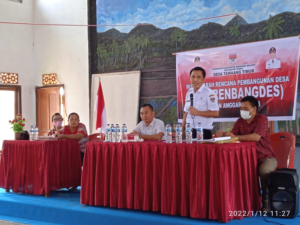 Terasnkri.com | Minsel, Sulut – Pemerintah Desa (pemdes) Tawaang Timur Kecamatan Tenga Kabupaten Minahasa Selatan, Rabu, 12/01/2022 bertempat di BPU Desa Tawaang Timur Mengadakan kegiatan Musyawarah Rencana Pembangunan Desa (Musrenbangdes) untuk tahun anggaran 2023