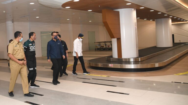 TERASNKRI.COM | NTB – Setibanya di Kabupaten Lombok Tengah, Provinsi Nusa Tenggara Barat, Kamis, 13 Januari 2022, Presiden Joko Widodo meninjau fasilitas Bandara Internasional Zainuddin Abdul Madjid yang nantinya akan digunakan sebagai akses masuk ke Provinsi Nusa Tenggara Barat bagi penonton dan peserta MotoGP Mandalika 2022.