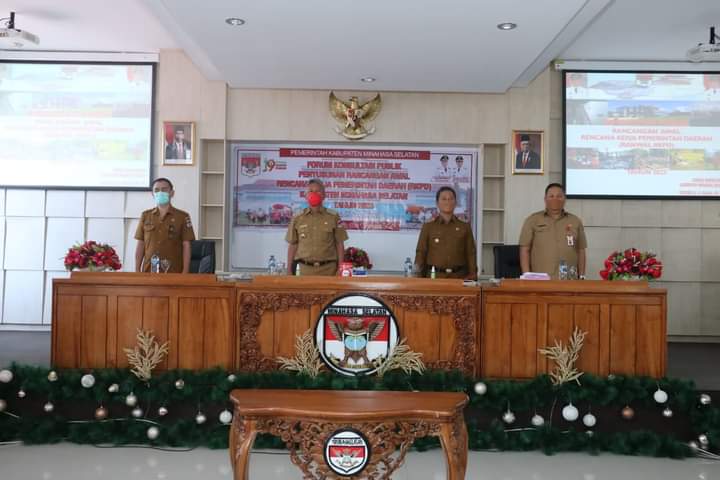 Terasnkri.com | Minsel, Sulut – Bupati Minahasa Selatan Franky Donny Wongkar SH, membuka Forum Konsultasi Publik dalam Rangka Penyusunan Rancangan Awal RKPD Kabupaten Minahasa Selatan Tahun 2023. Acara digelar di ruang rapat lt. 4 kantor Bupati Minsel, Selasa (25/01/2022).