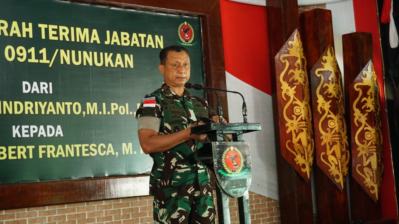 Komandan Korem 092/Maharajalila berpesan agar komandan Kodim 0911 Nunukan Letkol Inf Albert Frantesca Hutagalung yang baru bisa meneruskan tanggung jawab tersebut dan cepat menyesuaikan diri di Kabupaten Nunukan.