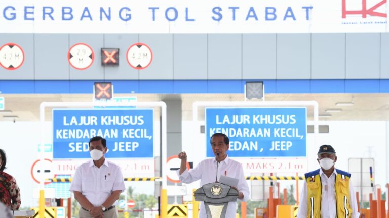 TERASNKRI.COM | SUMUT – Presiden Joko Widodo meresmikan Jalan Tol Binjai-Langsa seksi I Binjai-Stabat sepanjang 11,8 kilometer dalam kunjungan kerjanya ke Provinsi Sumatera Utara, pada Jumat, 4 Februari 2022. Peresmian jalan tol yang merupakan bagian dari jalan tol Binjai-Langsa sepanjang 131 kilometer tersebut digelar di Gerbang Tol Stabat, Kecamatan Stabat, Kabupaten Langkat.