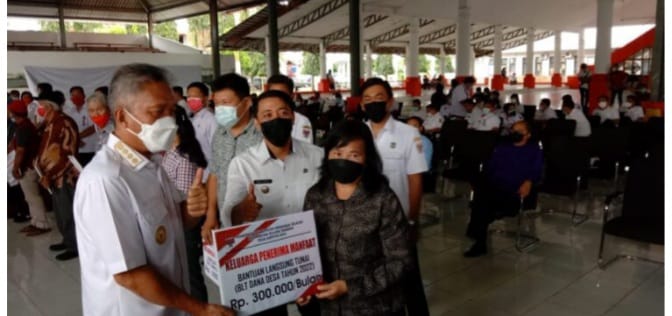 terasnkri.com | Minsel – Bupati Minahasa Selatan Franky Donny Wongkar SH., Launching Bantuan Langsung Tunai Dana Desa (BLT-DD) Tahun Anggaran 2022 dan Pekan Panutan Pajak Tahun 2022. Launcing tersebut digelar di aula Waleta kantor Bupati Minahasa Selatan, Rabu (16/02/2022).