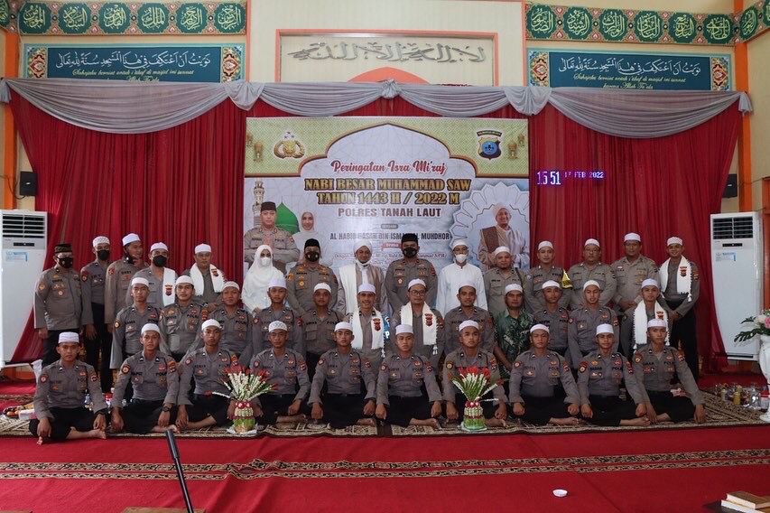 Peringatan Isra’ Mi’raj dilingkungan Polres Tanah Laut, dihadiri Kapolres Tanah Laut AKBP Rofikoh Yunianto, S.I.K, Ibu Ketua Bhayangkari Cabang Tanah Laut Ny. Nadya Rodikoh Yunianto, dan diikuti oleh seluruh personil Polres Tanah Laut dan Bhayangkari, dengan penceramah Al Habib Hasan Bin Ismail Al Mudhor selaku pimpinan pusat Ahbaabul Musthofa dari Probolinggo Jawa Timur.