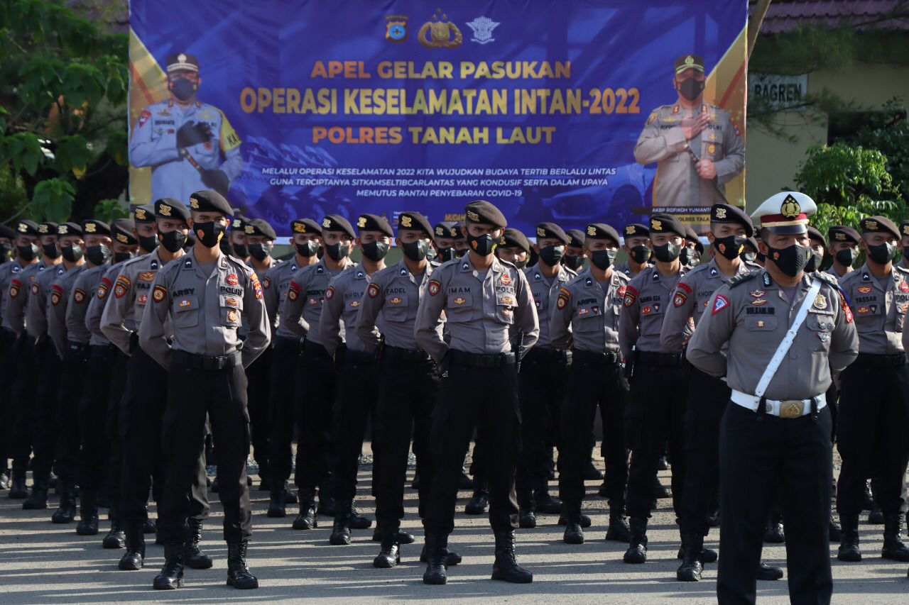 Terasnkri.com | Tanah Laut, Kalsel – Guna meningkatkan kepatuhan dan disiplin masyarakat dalam berlalu lintas serta menurunkan angka pelanggaran kecelakaan lalu lintas maupun penyebaran Covid-19, Polres Tanah Laut Polda Kalsel Apel Gelar Pasukan Operasi Kepolisian Kewilayahan dengan sandi “Operasi Keselamatan Intan 2022”.
