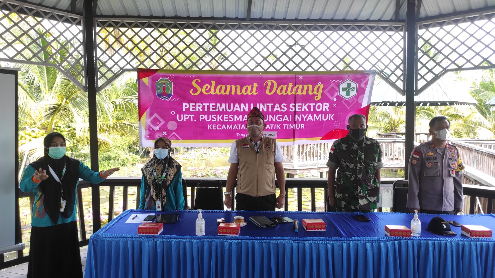 Kepala UPT Puskesmas Sei. Nyamuk Mardawiyah, S.Si, Apt mengungkapkan bahwa Pertemuan ini merupakan tindak lanjut kunjungan kepala dinas Kesehatan Kab. Nunukan dimana target vaksinasi untuk Kab. Nunukam terahir 31 Maret 2022 harus selesai tahap 1 dan 2, sementara untuk yang sudah melaksanakan vaksin tahap 2 setelah 3 bulan bisa untuk mendapatkan Vaksin Boster.