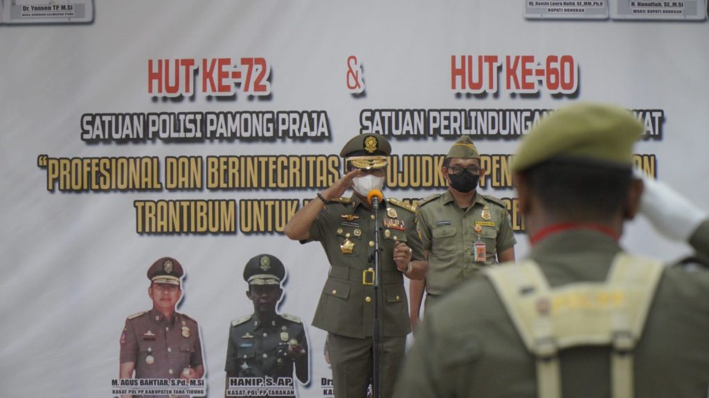 TERASNKRI.COM | NUNUKAN, KALTARA – Gubernur Kalimantan Utara menjadi inspektur upacara peringatan Hari Ulang Tahun ke 72 Satuan Polisi Pamong Praja (Satpol PP) dan ke 60 Satuan Perlindungan Masyarakat, di Aula Kantor Bupati Nunukan, Jumat (11/3/2022).