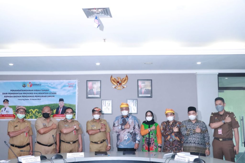 Setelah melakukan peninjauan lokasi yang terletak di Kilometer 2 Jalan Poros Bulungan-Malinau, Sekjen Bawaslu RI Dr. Gunawan Suswantoro langsung menuju ke Kantor Gubernur Kaltara untuk melakukan penandatanganan Naskah Perjanjian Hibah Daerah (NPHD) Hibah Tanah bersama Gubernur Kaltara.