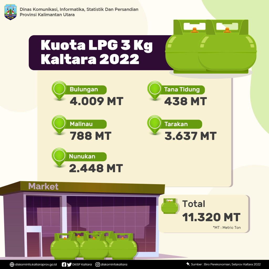 Berdasar data yang diperoleh kuota LPG itu dibagi ke sejumlah wilayah di Kaltara. Yakni, Bulungan sebanyak 4.009 MT, Malinau 788 MT, Nunukan 2.448 MT, Tana Tidung 438 MT dan Tarakan 3.637 MT.