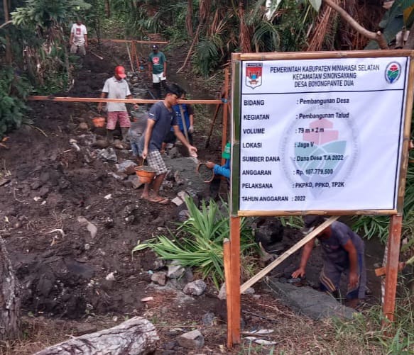 Pembangunan Talud Dari Dana Desa Tahap I TA 2022 Desa Boyongpante Dua Kecamatan Sinonsayang
