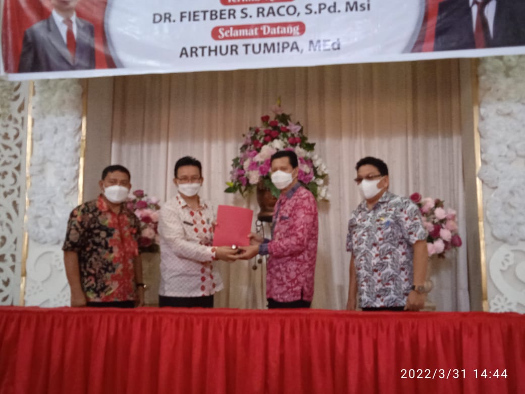 Sertijab Kadis Pendidikan dan Kebudayaan DR. Fietber S. Raco, S.Pd, Msi kepada Arthur Tumipa, MEd