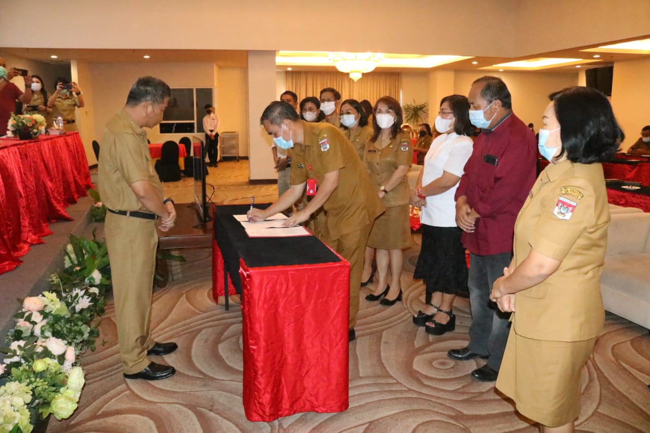 “Maka Kami Atas Nama Pemerintah Kabupaten Minahasa Selatan Menyatakan Berkomitmen Dalam Upaya Upaya Percepatan Penurunan Stunting Di Kabupaten Minahasa Selatan Dan Mendukung Target Prevalensi Stunting Nasional Pada Tahun 2024 Sebesar 14 Persen. Dan Kepada Kepala Perangkat Daerah Yang Terkait Dengan Intervensi Penurunan Stunting Untuk Dapat Memprioritaskan Program Dan Kegiatan Intervensi Penurunan Stunting Perencanaan Dan Penganggaran Di Tahun 2023 Dan Tahun Selanjutnya Serta Saling Berkoordinasi Dan Bekerja Sama Dalam Tim Yang Solid, “ungkap Wabup Pdt. Petra. (Cornay)