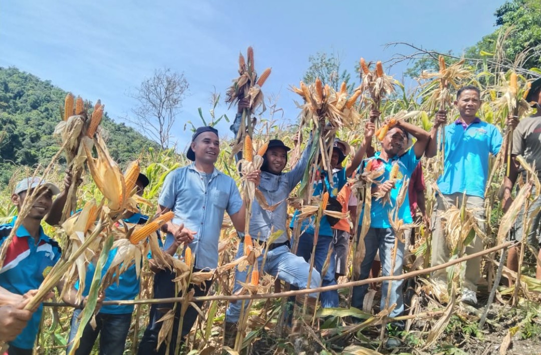 Panen raya pangan lokal jenis jagung dari Program Tanam Jagung Panen Sapi (TJPS) dilakukan di kebun jagung milik kelompok We’ang Gerak warga Kampung Damer, Desa Satar Padut,seluas 10 hektar, Rabu (06/04/2022)