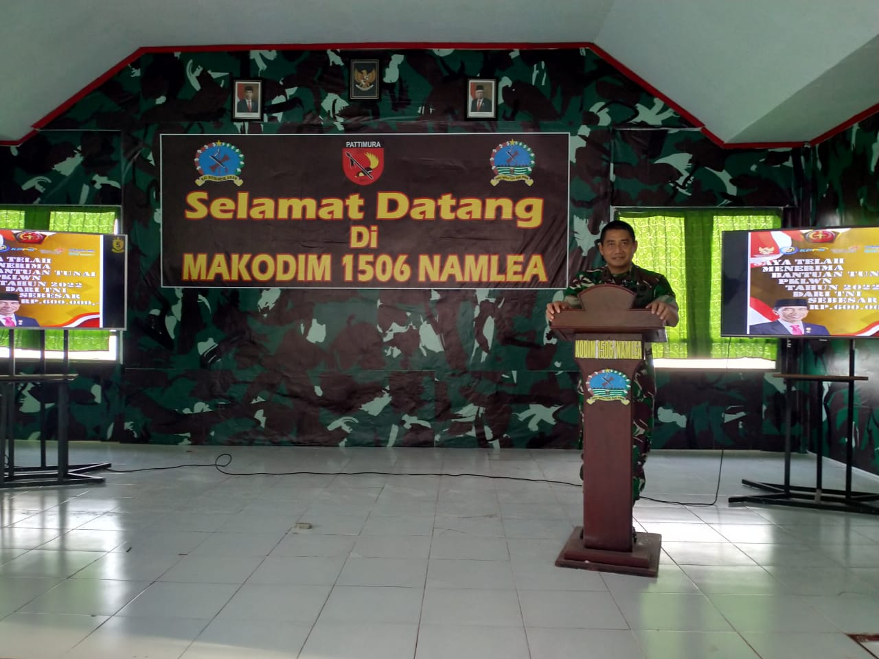 Kodim 1506 Namlea beri bantuan tunai kepada BTPKLWN Masyarakat tidak mampu di Kabupaten Buru yang dipusatkan di Makodim 1506 Namlea jalan Nametek, Desa Namlea Kabupaten Buru, Jumat (8/04/2022).