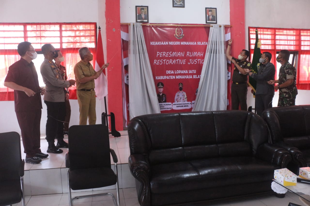 Peresmian Rumah / Kampung Restorative Justice tersebut oleh Kepala Kejaksaan tinggi sulawesi utara Edy Birton, SH, MH bersama Wakil Kepala Kejaksaan Tinggi Sulawesi Utara Fredy Runtu, SH., untuk Kota Manado dan secara Virtual untuk Kabupaten Minahasa Selatan, Kabupaten Minut dan Kabupaten Kepulauan Talaud.