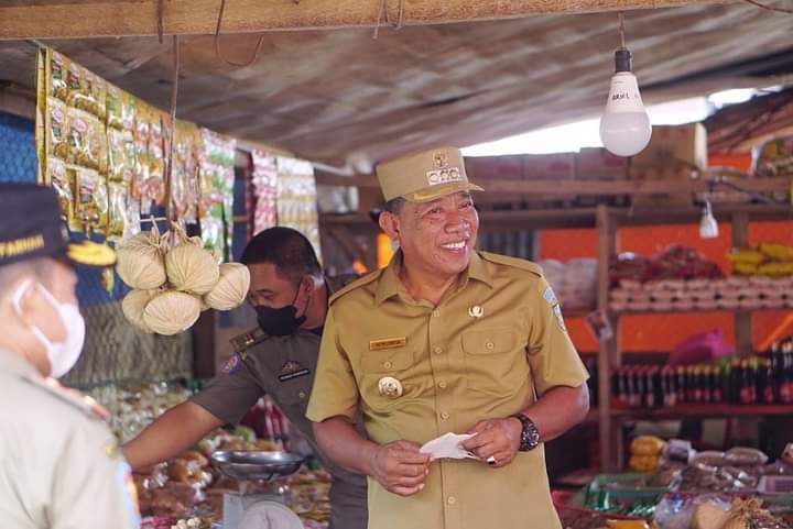 Terasnkri.com | Bolmut – Bupati Bolaang Mongondow Utara Drs. H. Depri Pontoh memimpin langsung Tim Pengendali Inflasi Daerah (TPID) melakukan inspeksi atau sidak 9 bahan pokok di Pasar Rakyat Boroko, Selasa (12/4/2022).