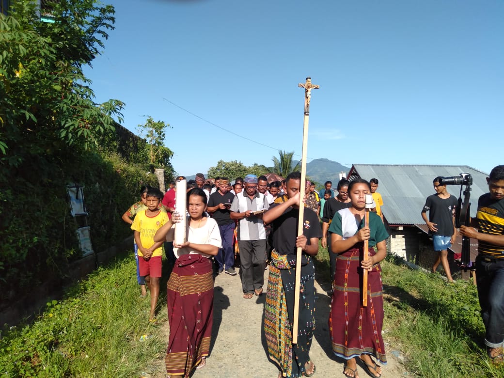 Umat katolik Stasi Santu Petrus Muwur Kecamatan Rahong Utara kabupaten Mangarai Propinsi Nusa Tengara Timur (NTT) sangat antusias lakukan perarakan jalan salib suci dengan penuh hikmad, Jumat (15/04/2022).