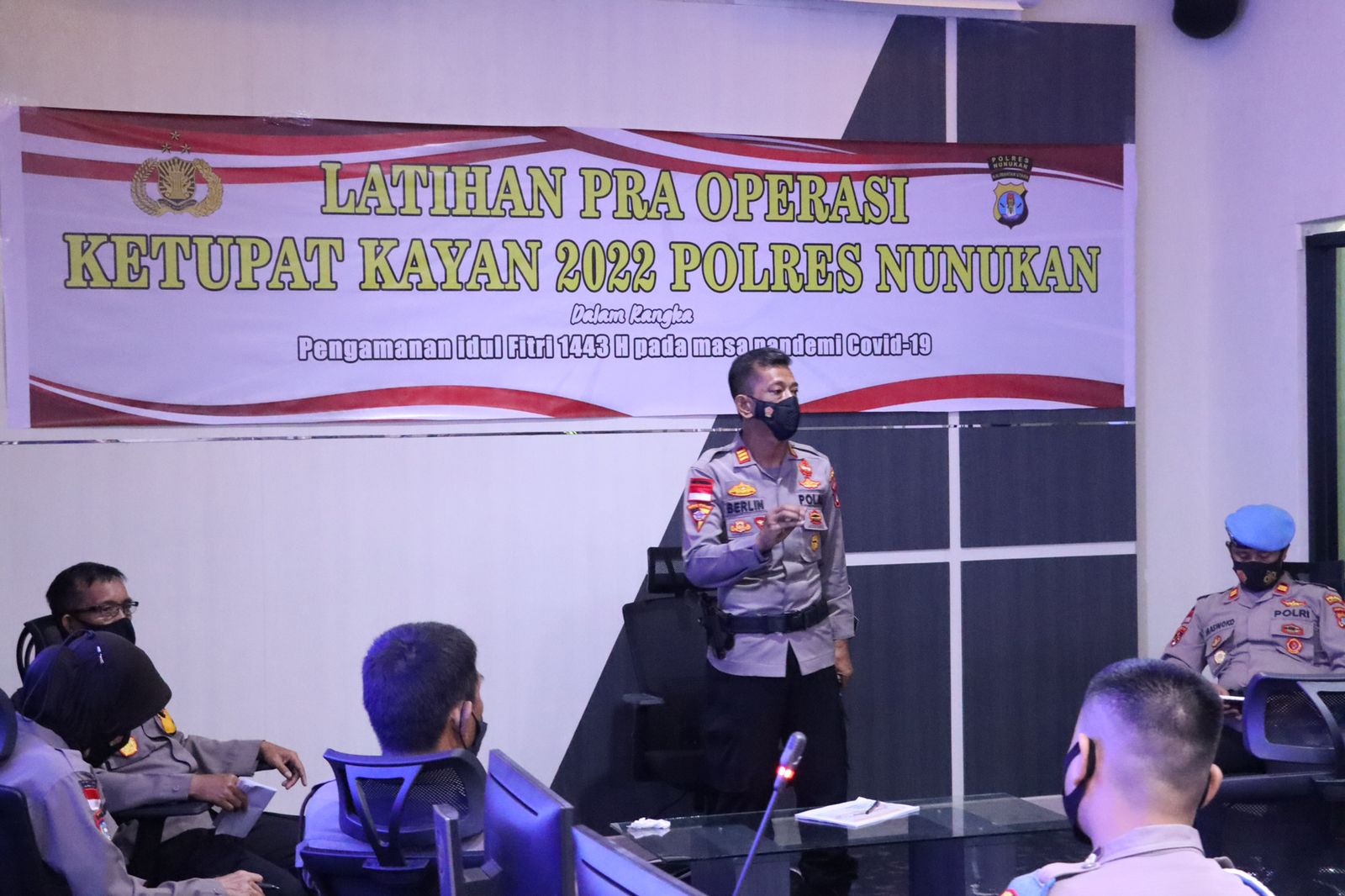 TERASNKRI.COM | NUNUKAN, KALTARA – Untuk memaksimalkan upaya pengamanan jelang dan saat lebaran Idul Fitri, Polres Nunukan menggelar Latihan Pra Operasi di Command Center Polres Nunukan, Rabu (27/04/22).