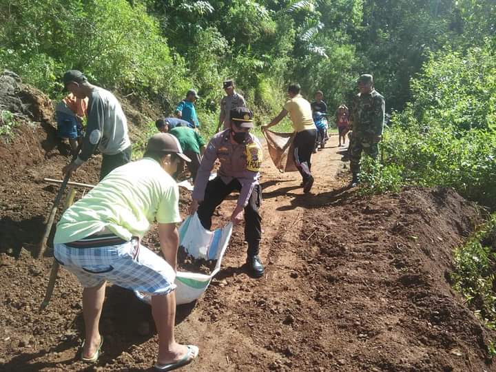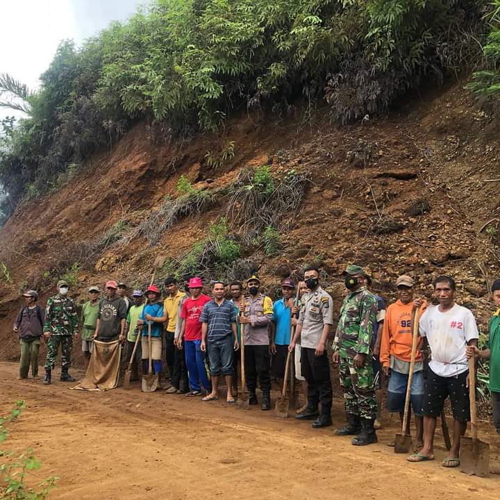 Melalui pesan WhatsApp (06/05/2022) yang diterima media ini,Kapolsek Kuwus, Arsilinus Lentarbmengungkapkan bahwa kegiatan bhakti gotong royong membersihkan material berupa tanah longsor yang menutupi badan jalan raya.