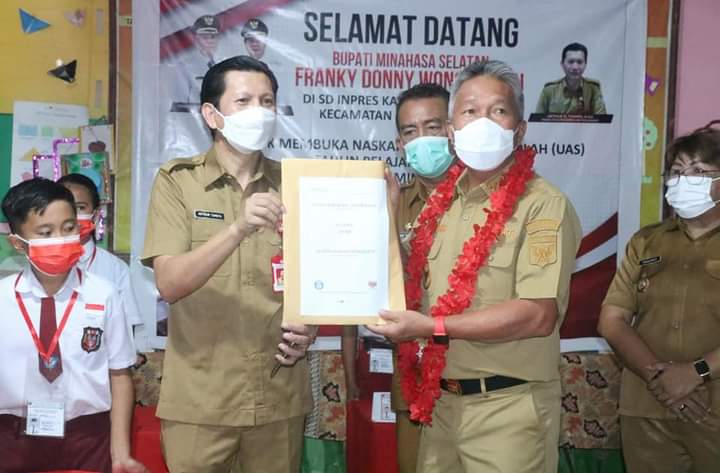 Bupati Minahasa Selatan Franky Donny Wongkar, SH., menghadiri Pembukaan Naskah Soal Ujian Sekolah (US) Sekolah Dasar di SD Inpres Kawangkoan Bawah dan Wakil Bupati Minahasa Selatan Pdt. Petra Yani Rembang menghadiri Pembukaan Naskah Soal Ujian Sekolah (US) di SD GMIM Tumpaan, kemudian dilanjutkan dengan Penyematan Tanda Peserta Ujian.
