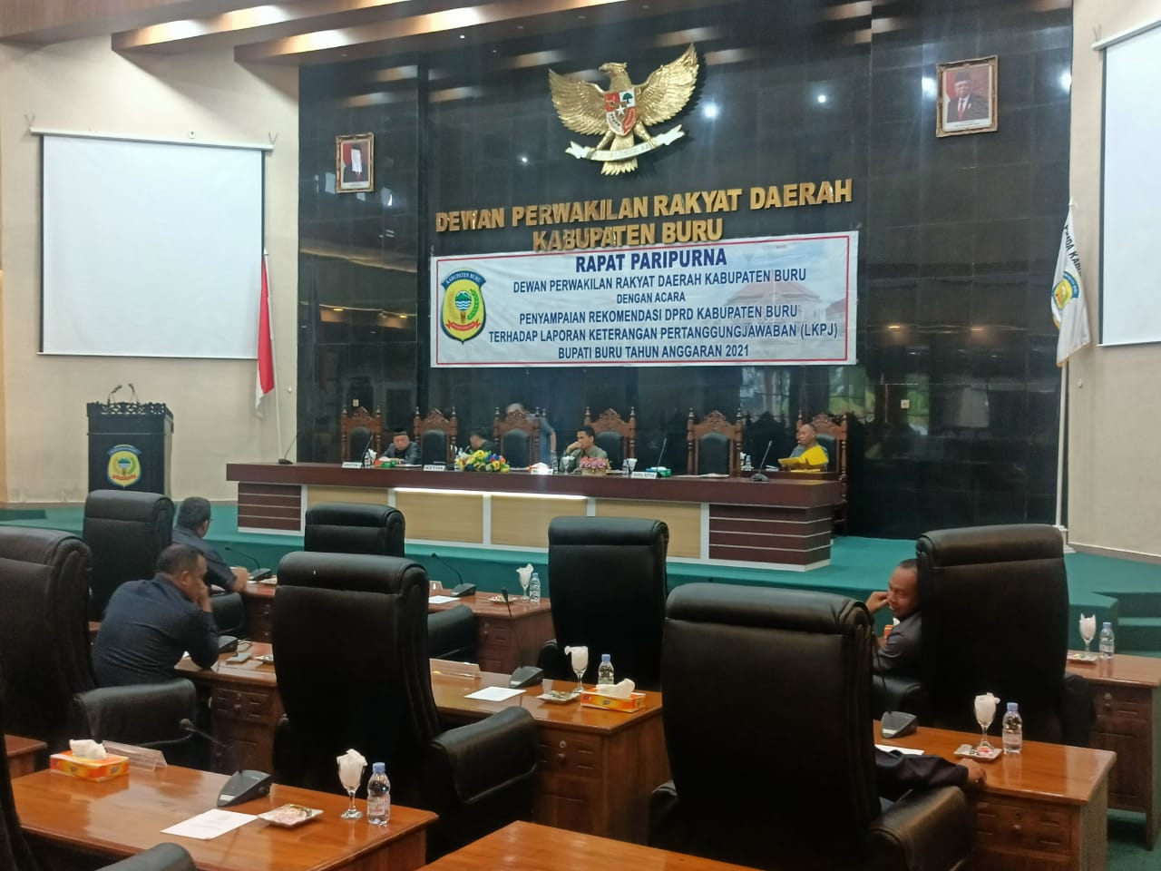 Rapat Paripurna di pimpin Ketua DPRD Buru, Roem Soplestuny didampingi wakil ketua I dan wakil Ketua II DPRD Kabupaten Buru, sedangkan Pemerintah Daerah Buru, dihadiri Asisten I, Masrin Bugis mewakili Bupati Buru, Ramly Umasugi.