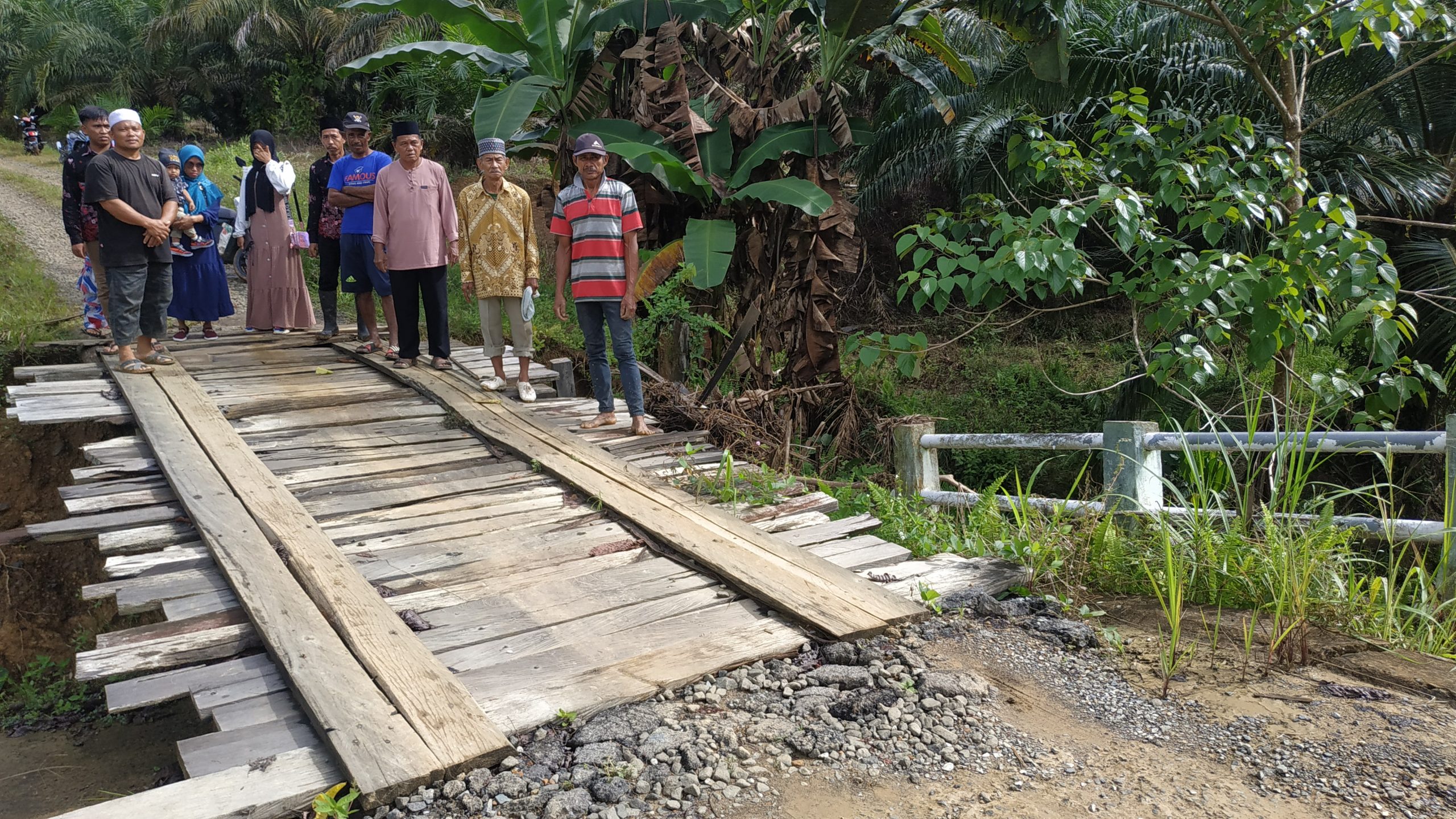 Menurut penuturan Iskandar (45 Tahun) bersama beberapa warga RT.14 Desa Sungai Limau yang berada di jembatan, untuk sementara warga secara gotong royong mengusahakan jembatan darurat untuk kelancaran warga dalam mengeluarkan hasil bumi dari kebun mereka.