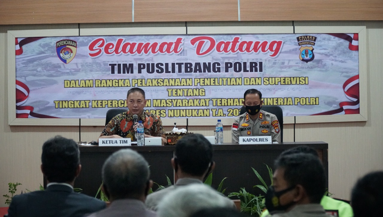 TERASNKRI.COM | NUNUKAN, KALTARA – Tim Puslitbang Polri mengunjungi Polres Nunukan untuk melaksanakan penelitian dan supervisi tentang tingkat kepercayaan masyarakat terhadap Polri di Polres Nunukan, Kamis (26/5/2022)