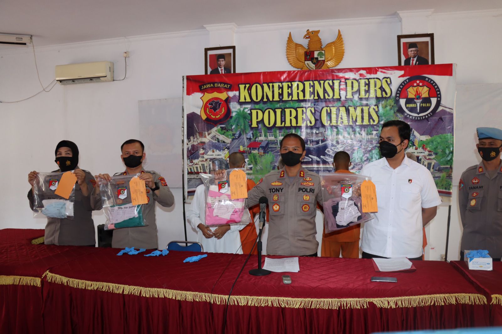 “Terhadap laporan, berdasarkan hasil penyelidikan dan alat bukti yang ada terhadap terlapor sebanyak 4 orang sudah ditetapkan sebagai tersangka,” kata Kapolres Ciamis AKBP Tony Prasetyo Yudhangkoro, SH., S.I.K., M.T., didampingi Kasat Reskrim Polres Ciamis AKP Muhammad Firmansyah, S.I.K., dan Kasi Humas Polres Ciamis Iptu Magdalena NEB, dalam konferensi pers di Aula Pesat Gatra Mapolres Ciamis, Rabu (6/7/2022).
