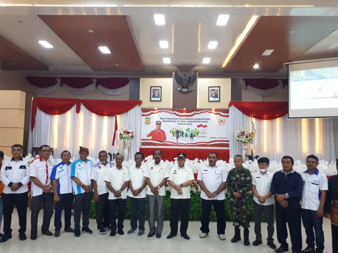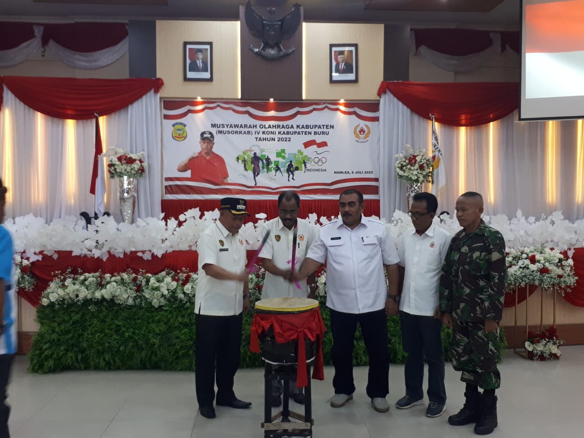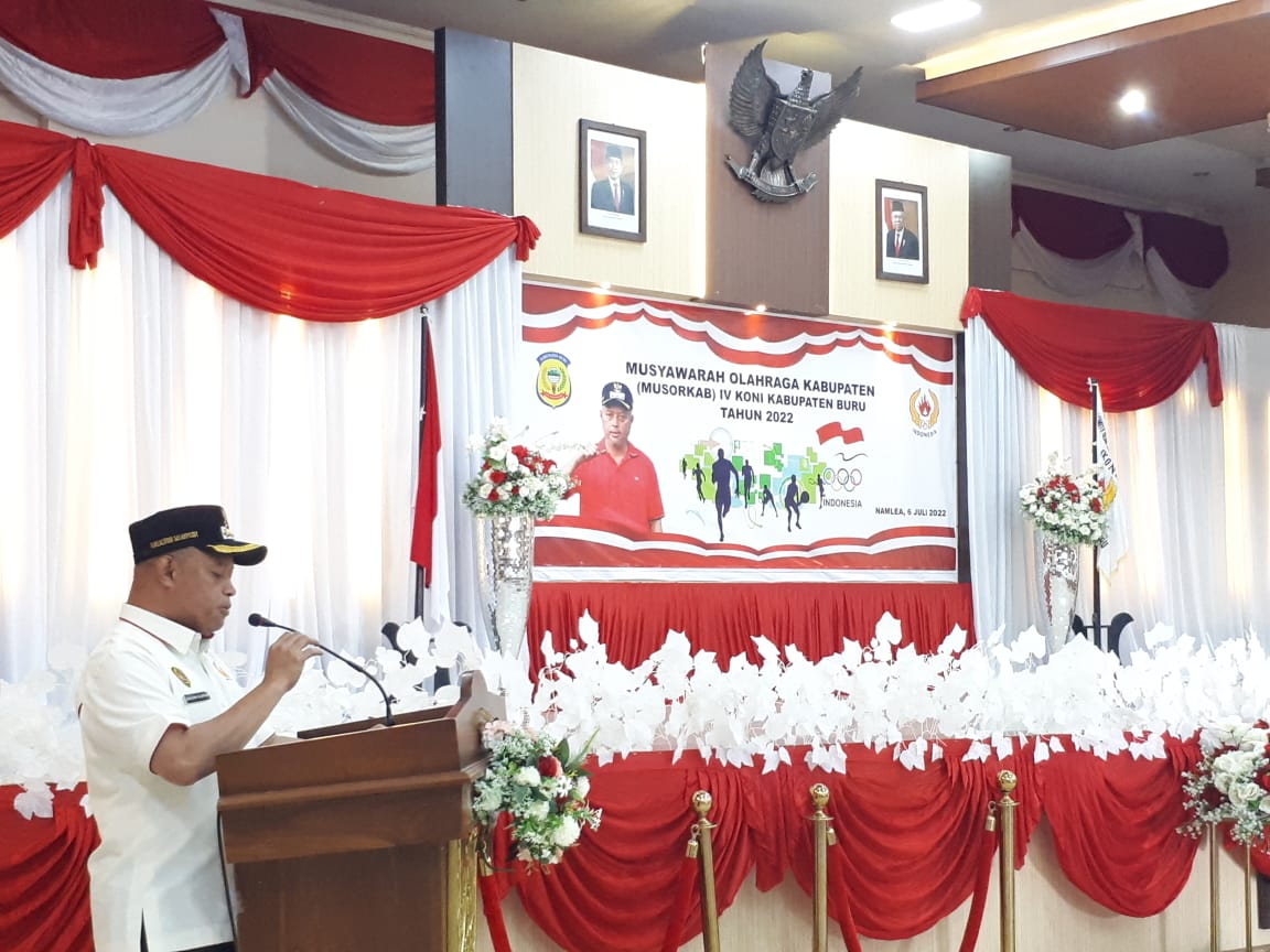 TERASNKRI.COM | Namlea, Maluku – Penjabat (Pj.) Bupati Kabupaten Buru, dr. Djalaludin Salampessy membuka secara resmi Musyawarah Olahraga Kabupaten (Musorkab) IV Komite Nasional Indonesia (KONI) Kabupaten Buru Tahun 2022, Rabu (6/7/22) di Aula Kantor Bupati Buru.