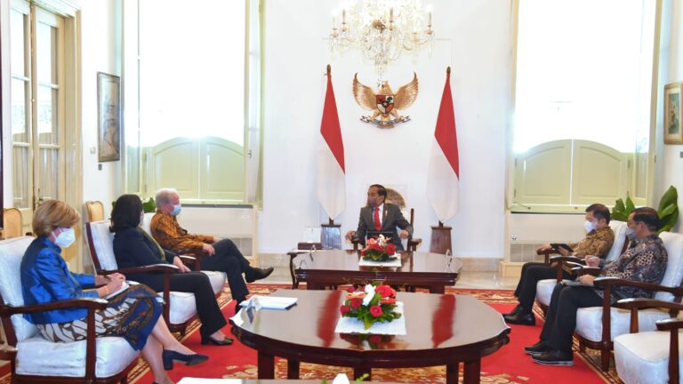 TERASNKRI.COM | JAKARTA – Presiden Joko Widodo menerima delegasi Bank Dunia di Istana Merdeka, Jakarta, pada Kamis, 14 Juli 2022. Delegasi yang hadir yakni Axel van Trotsenburg selaku Managing Director of Operations, Manuela V. Ferro selaku Regional Vice President East Asia and Pacific, serta Satu Kahkonen selaku Country Director Indonesia and Timor-Leste.