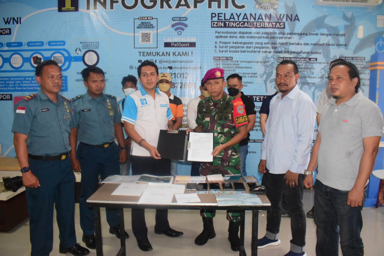 TERASNKRI.COM | NUNUKAN, KALTARA – Prajurit Satuan Tugas (Satgas) Marinir Ambalat XXVIII TNI AL Guspurla Koarmada II berhasil mengamankan enam orang yang terdiri dari tiga orang Warga Negara Indonesia (WNI) dan tiga orang Warga Negara Asing (WNA), yang bertempat di Pos Marinir (Pos Mar) Sei Pancang, Kecamatan Sebatik Utara, Kabupaten Nunukan, Prov. Kalimantan Utara. Rabu (20/07/2022) sekira pukul 17.30 Wita