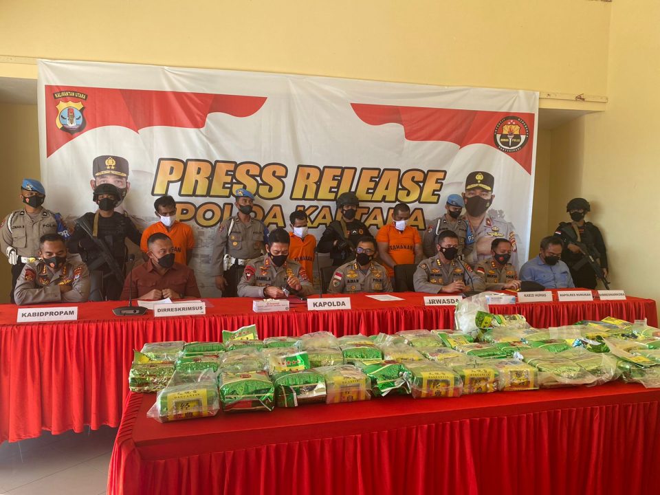 Sementara itu, Dirkrimsus Polda Kaltara Kombes Hendy Kurniawan menerangkan para pelaku mencoba mengelabui petugas dengan mengemas narkoba dalam teh Guan Yi Wang yang dimasukkan dalam karung.