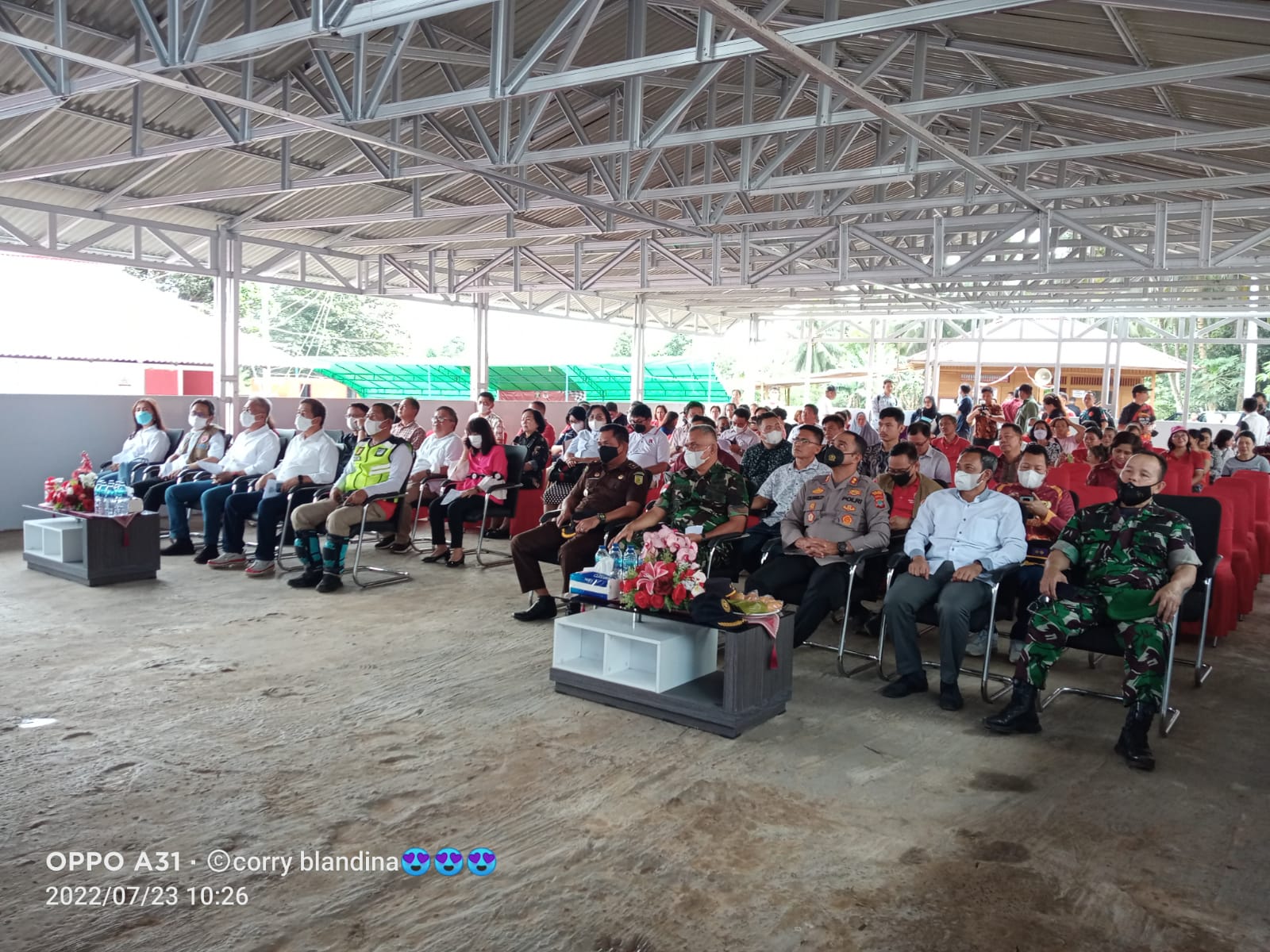Hadir pada kegiatan Ibadah Syukur peresmian hunian sementara diantaranya Gubernur Sulawesi Utara diwakili oleh, Kepala Badan Penanggulangan Bencana Daerah Provinsi Sulawesi Utara Drs. Joy Oroh, Kepala Kantor Wilayah Kementerian Hukum dan HAM Sulawesi Utara Haris Sukamto, AKS, S.H, M.H, Bupati Minsel Frangky Donny Wongkar, Wakil Bupati Minsel Petra Yani Rembang serta Sekertaris Kabupaten Minahasa Selatan Leddy Kawatu