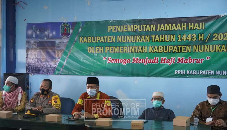 Asisten Pemerintahan dan kesra M. Amin berkesempatan menyampaikan sambutan Bupati. Dalam sambutannya, Bupati mengucapkan selamat datang kepada jemaah haji kab. Nunukan dan selamat berkumpul kembali bersama keluarga tercinta.
