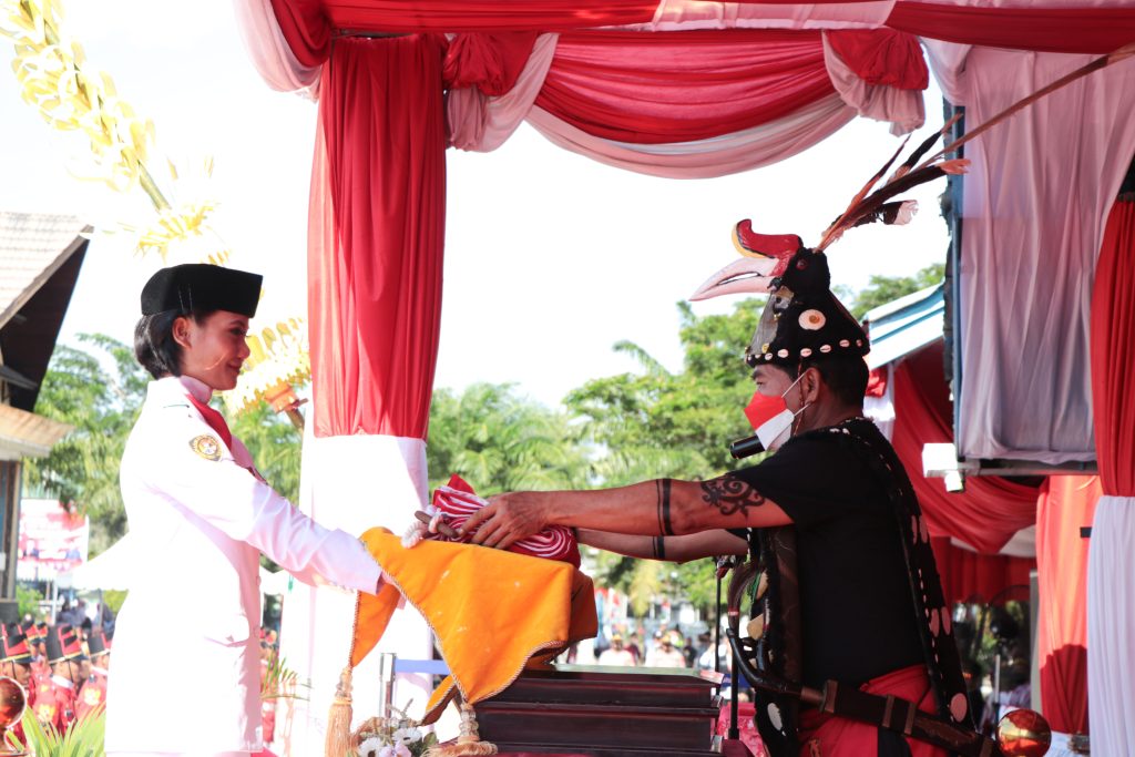 TERASNKRI.COM | TANJUNG SELOR, KALTARA – Menjadi inspektur upacara peringatan Hari Kemerdekaan ke-77 Republik Indonesia, Gubernur Kaltara, Drs H Zainal A Paliwang SH, M.Hum mengenakan pakaian adat Dayak Bulusu.