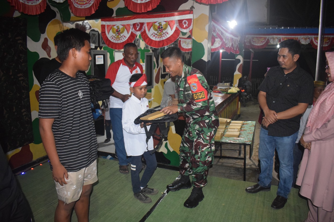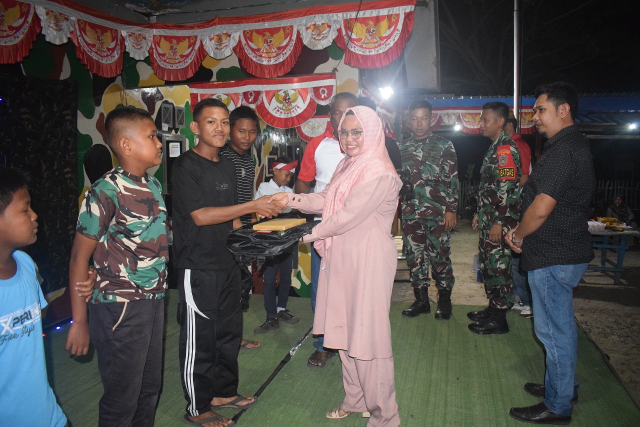 Dalam sambutanya, Komandan Satgasmar Ambalat XXVIII Kapten Marinir Andreas Parsaulian Manalu, ST.Han menyampaikan banyak terimakasih kepada warga Sei Pancang yang sudah berperan aktif bersinergi dengan TNI untuk menjaga wilayah perbatasan. “Termasuk kegiatan dari pagi hingga petang tadi mulai dengan mengikuti rangkaian upacara HUT RI ke 77 kemudian pengibaran bendera sepanjang 10 kilometer di perairan pulau sebatik, termasuk lomba-lomba kas 17 Agustus yang sudah dilaksanakan beberapa hari sebelumnya”.