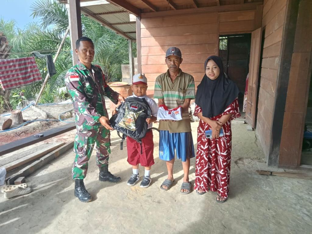TERASNKRI.COM | Nunukan, Kaltara – Bertempat di RT. 09 desa Saiklayan kecamatan Seimenggaris, Pos Seimanggaris Baru membagikan Sargal (Sarana Penggalangan) yang berupa tas sekolah dan baju NKRI merupakan dukungan dari Mabes TNI untuk warga dan anak-anak diperbatasan, Selasa (30/08/2022).