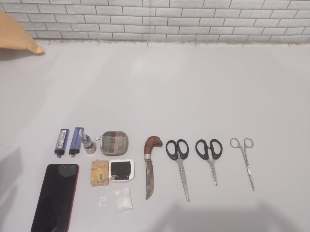Selain dua bungkus ukuran sedang dan ukuran kecil sabu siap edar, turut juga diamankan satu buah bong, satu buah handphone android, badik kecil dan alat-alat pendukung (gunting, dompet kecil, korek & plastik).